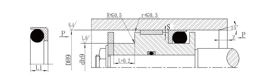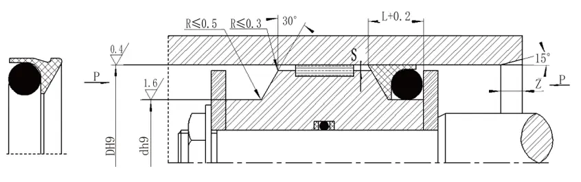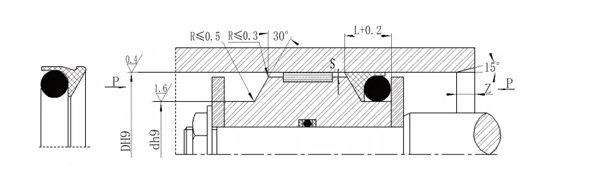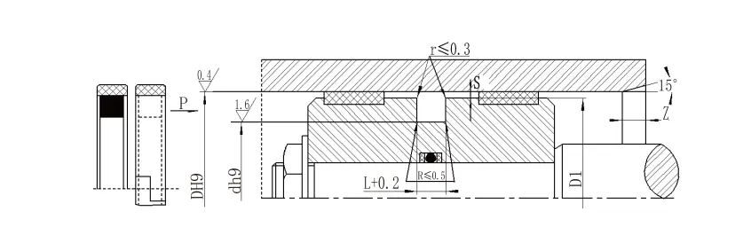ΣΗΜΕΙΩΣΗ: 1 Για πιέσεις> 60MPa, η περιοχή ρίζας σφραγίδας χρησιμοποιεί ανοχή αντιστοίχισης H8/F8 και η σφραγίδα SMAX με εξαιρετικά υψηλή πίεση <0,05. 2. Για διαμέτρους κυλίνδρου> 30mm, μπορεί να εγκατασταθεί σε κλειστές αυλακώσεις. Συμβουλευτείτε την εταιρεία μας. |